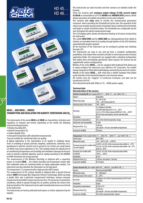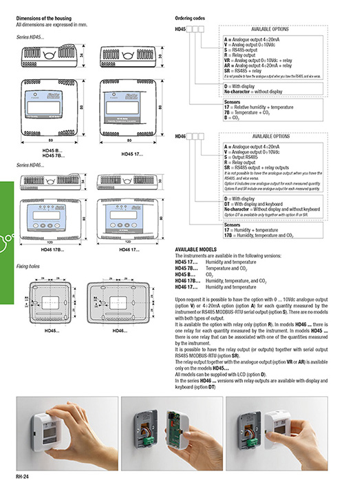 Transmitters, indicators and controllers Temperature, Ur and CO2 HD 45... - HD 46...
