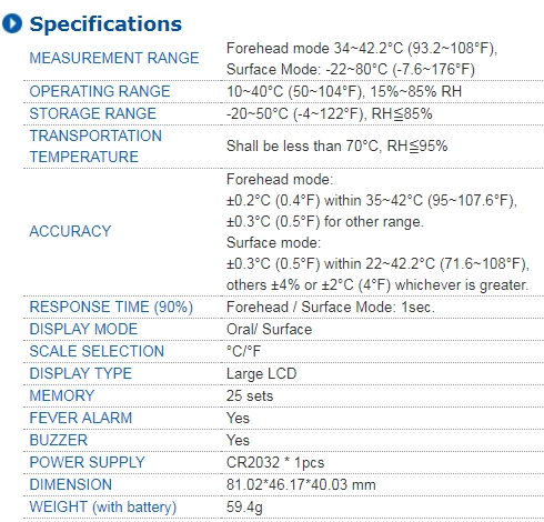 เทอร์โมมิเตอร์วัดไข้ทางทางหน้าผาก